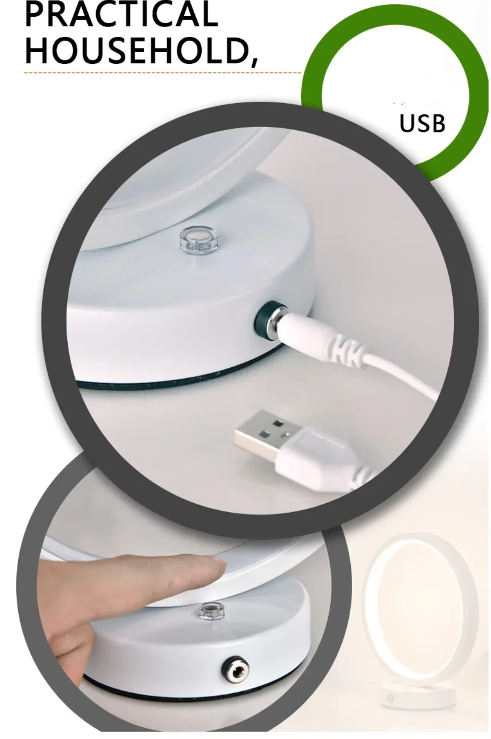 • 20 cm diameter circular LED ring with a stable base for secure placement on desks, nightstands, or credenzas.