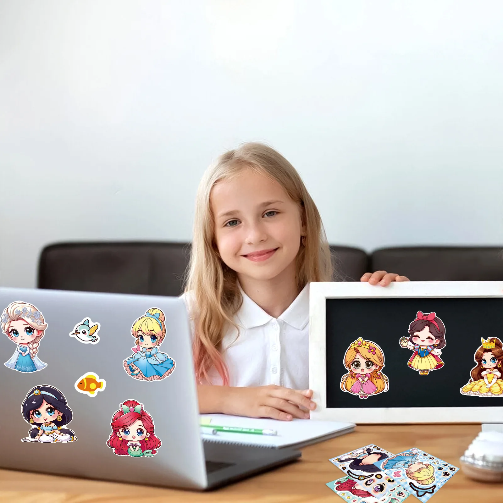 8Sheets Cute Princess Puzzle Stickers Make A Face DIY Anime Assemble Jigsaw Decals Birthday Party Decoration