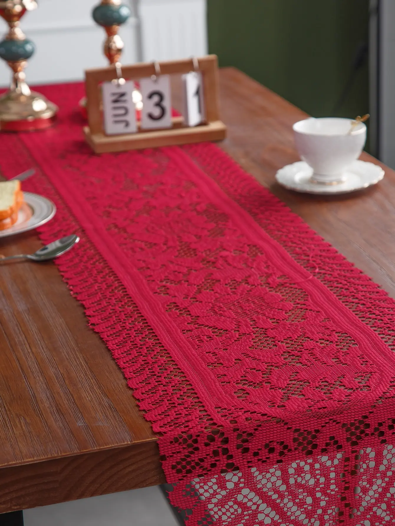 Elevate Your Table with a Bold Red Lace Runner